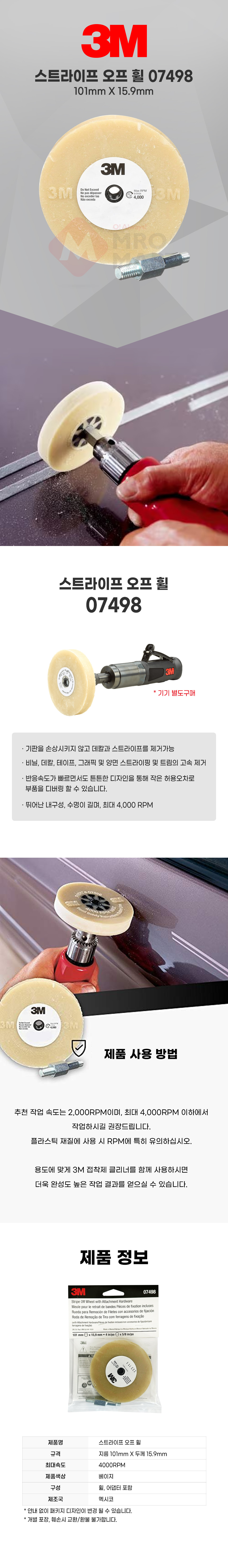 3M 07498 스트라이프 오프 휠 101mmX15.9mm 고무 리무벌 디스크 도장 비닐 테이프 접착 지우개 제거 연마