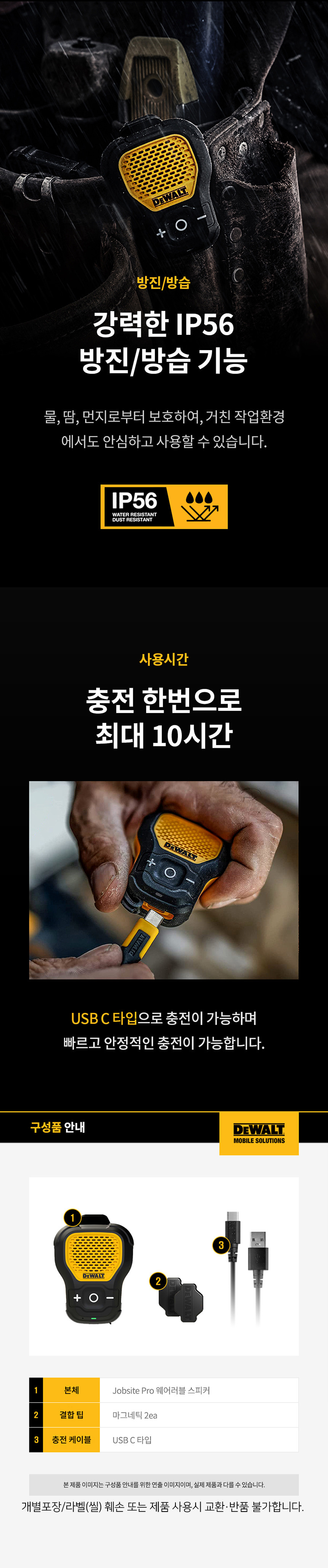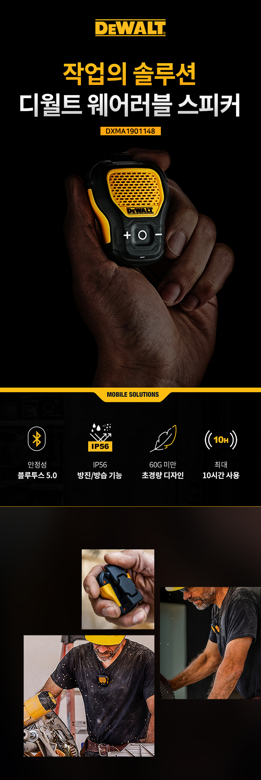 디월트 DXMA1901148 웨어러블 소형 스피커 블루투스 경량 미니 휴대용