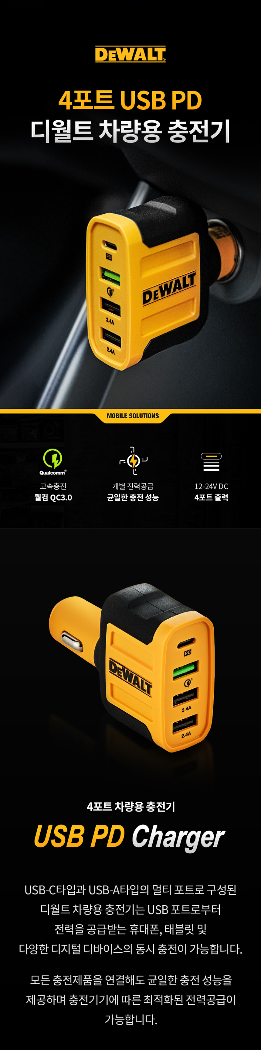 디월트 4포트 USB PD 차량용 충전기 DXMA1419009 시거잭 고속 충전
