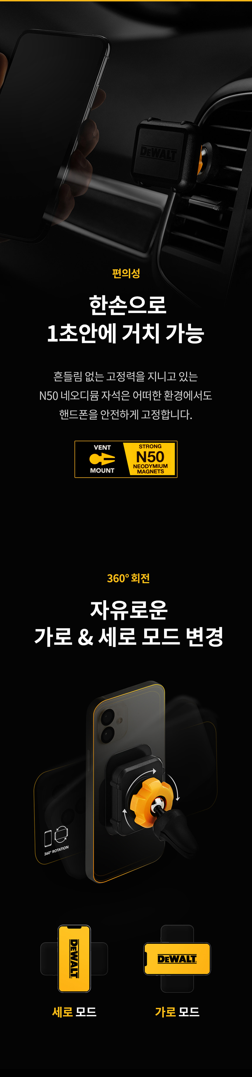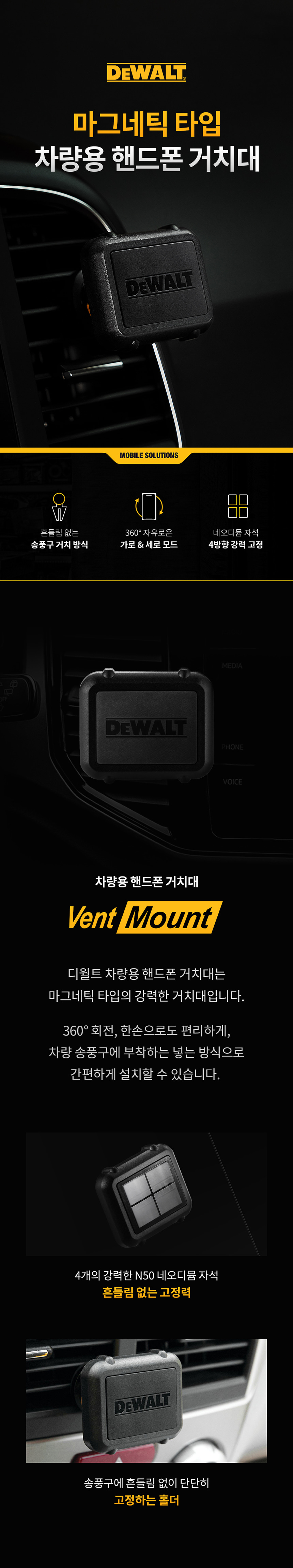 디월트 차량용 핸드폰 거치대 DXMA2040435 송풍구 거치 자석 마그네틱
