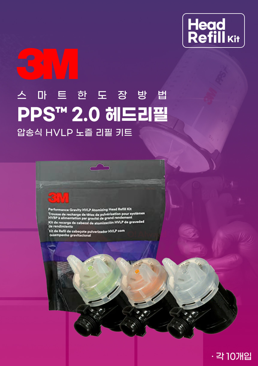 3M PPS 스프레이건 헤드 리필 압송식 노즐 10개입 PN26818 직경1.8 차량 도장 도색 페인트