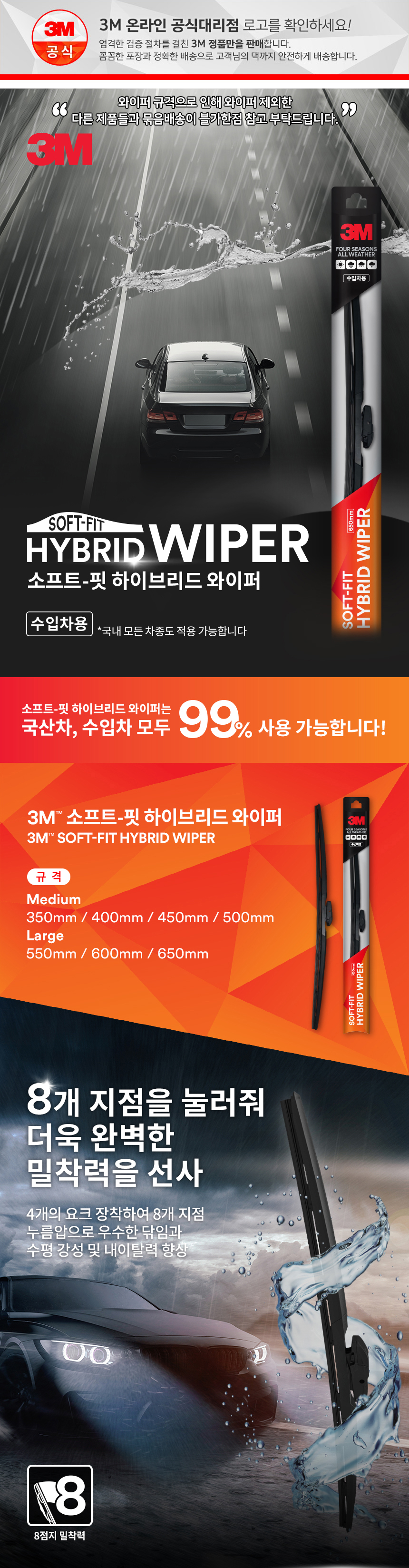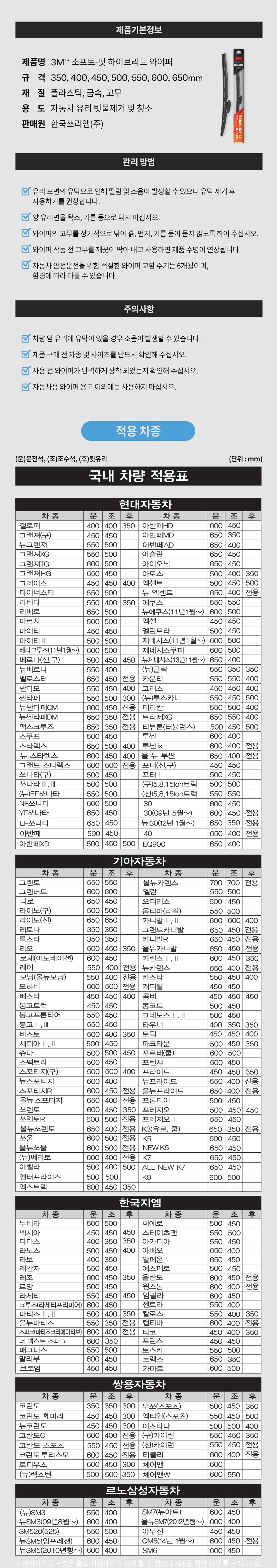 3M 소프트핏 하이브리드 와이퍼 550mm 프리미엄 자동차 수입차 국산차 와이퍼