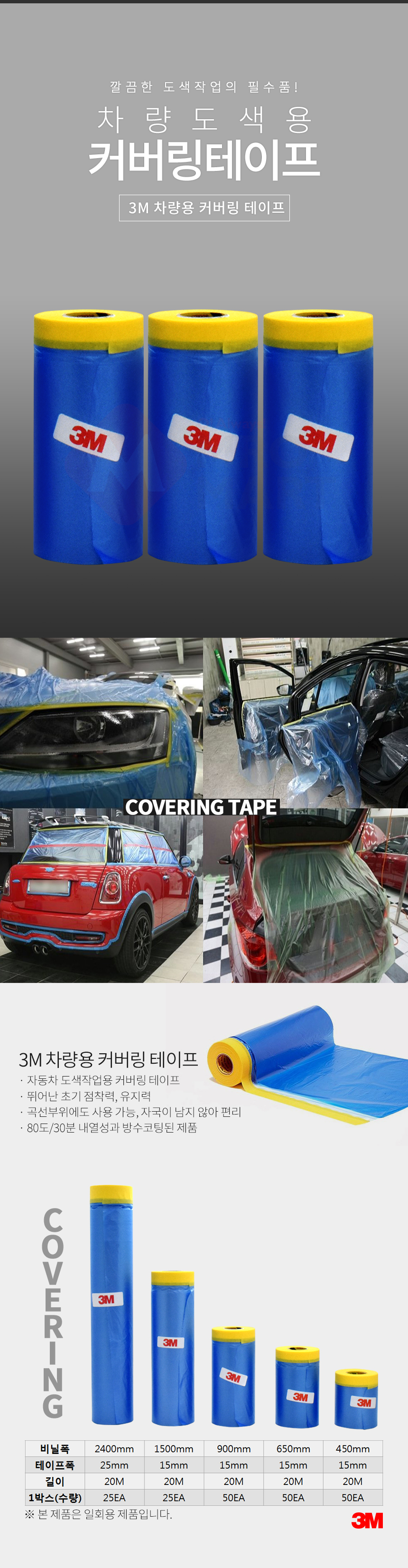3M 차량용 커버링 카바링 테이프 보양 도장 도색 작업 비닐 블루 1500mm
