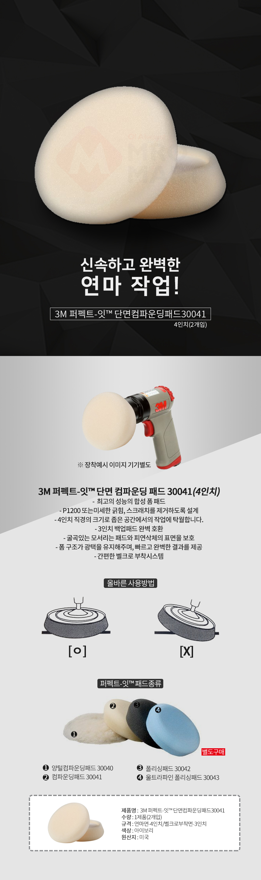 3M 30041퍼펙트잇 4인치 컴파운딩 패드 세차 광택 연마 자동차 관리