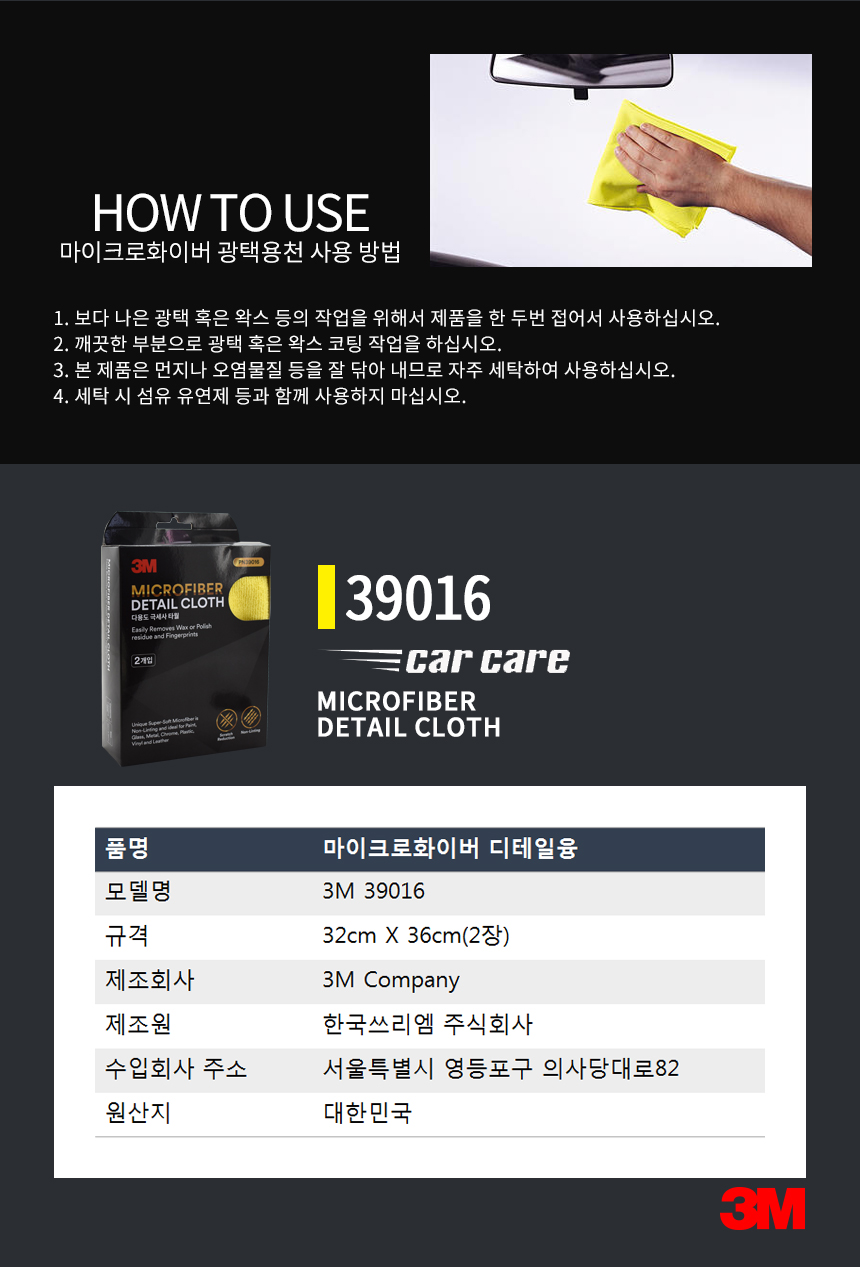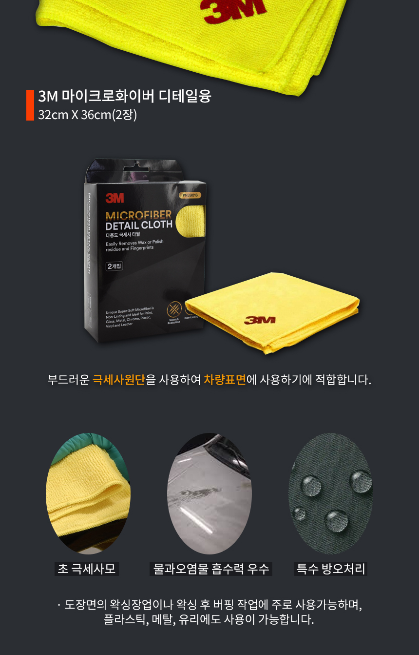 3M 마이크로 화이버 디테일융 39016 32cmX36cm 세타 타올 타월 광택 천