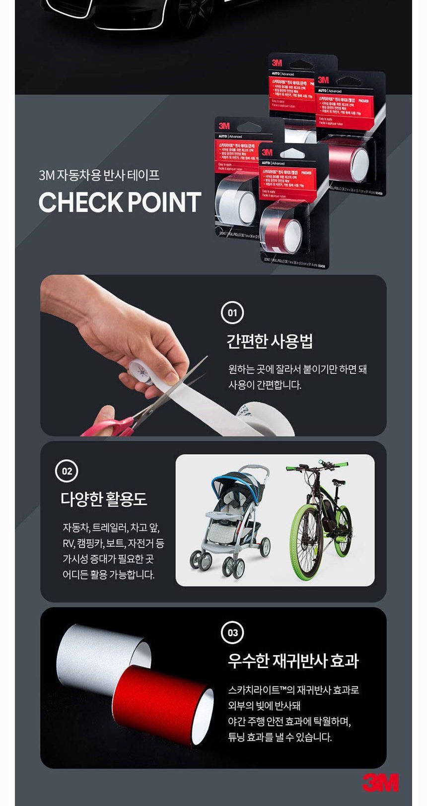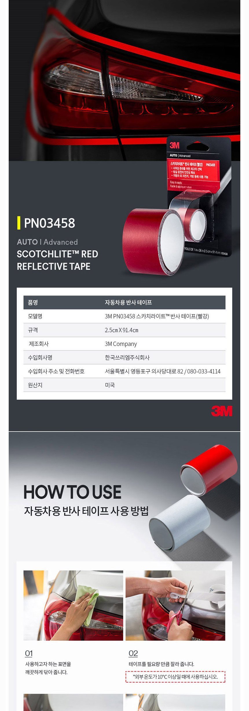 3M 스카치라이트 반사 테이프 빨강 PN03458 2.5cmX91.4cm