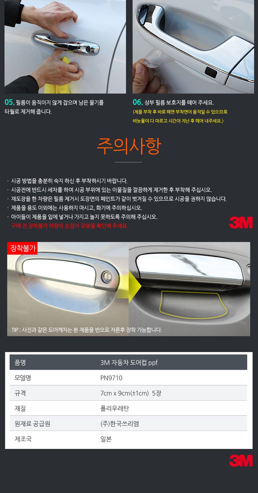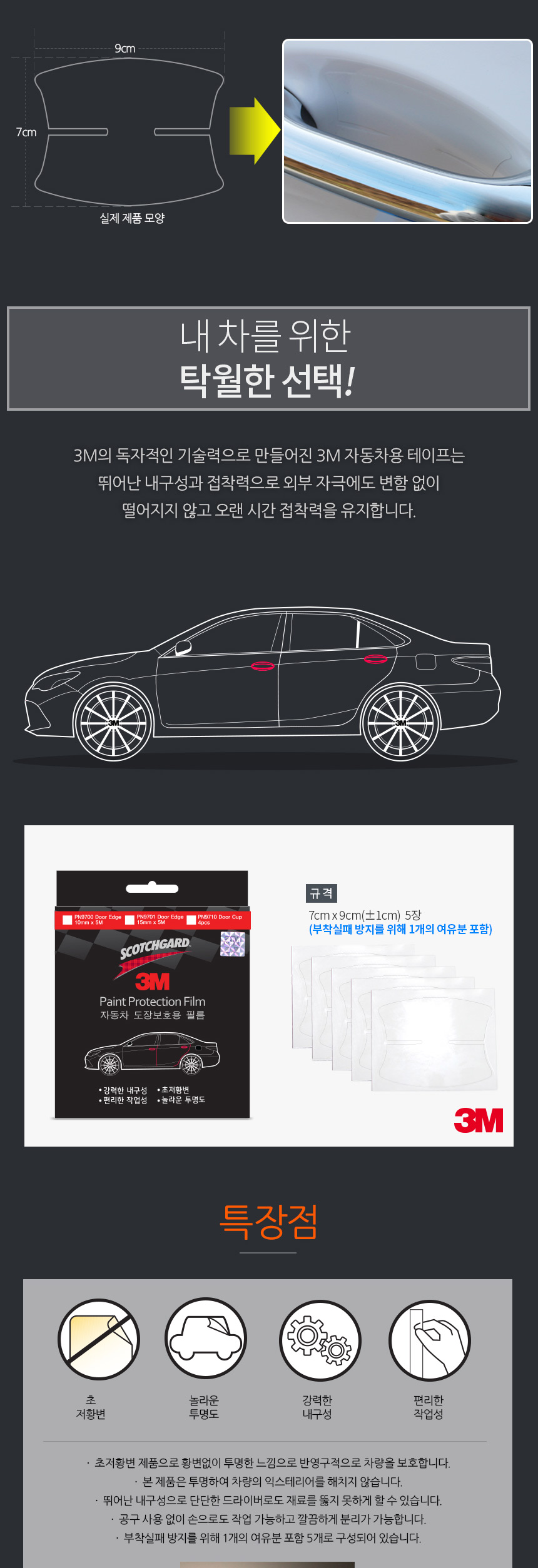 3M PN9710 자동차 도어컵 5P ppf 도어 손상 방지 보호 필름 차량용 문콕 방지 몰딩
