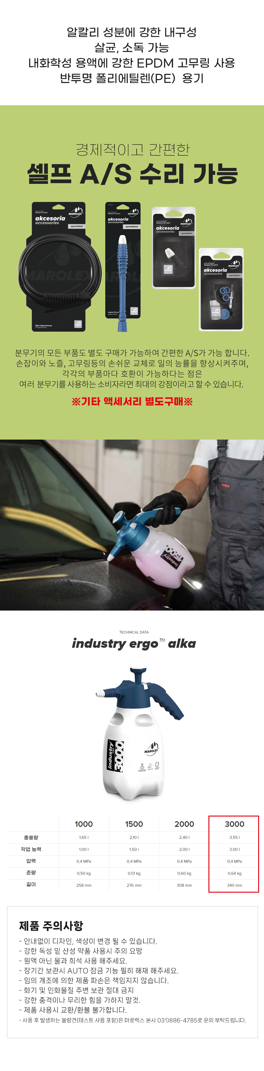 마로렉스 인더스트리 에르고 알카 3000 수동 압축 분무기 고압 분사 세차 방역 EPDM 알칼리 화학용