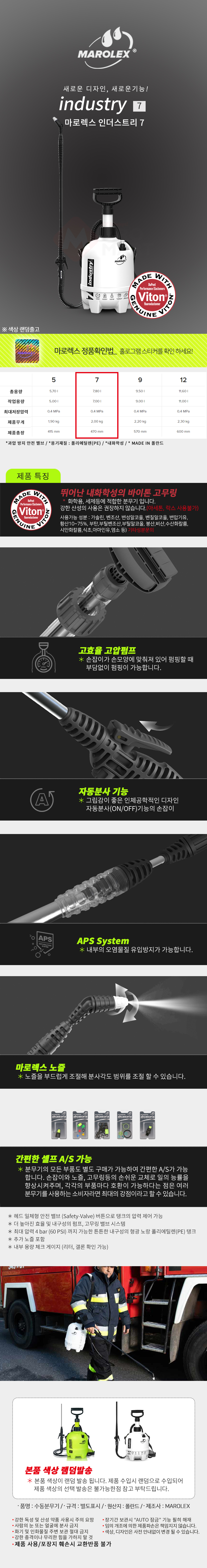 마로렉스 인더스트리 7L 압축분무기 대형분무기 원예 세차 액체비료 청소 소독