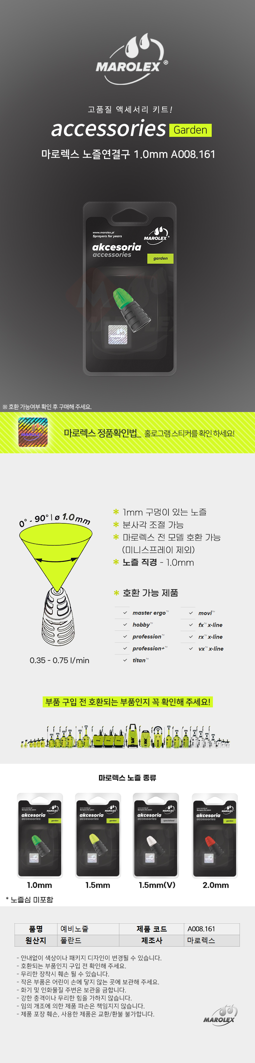 마로렉스 노즐연결구 1.0mm Z1210 압축분무기 호환 부품