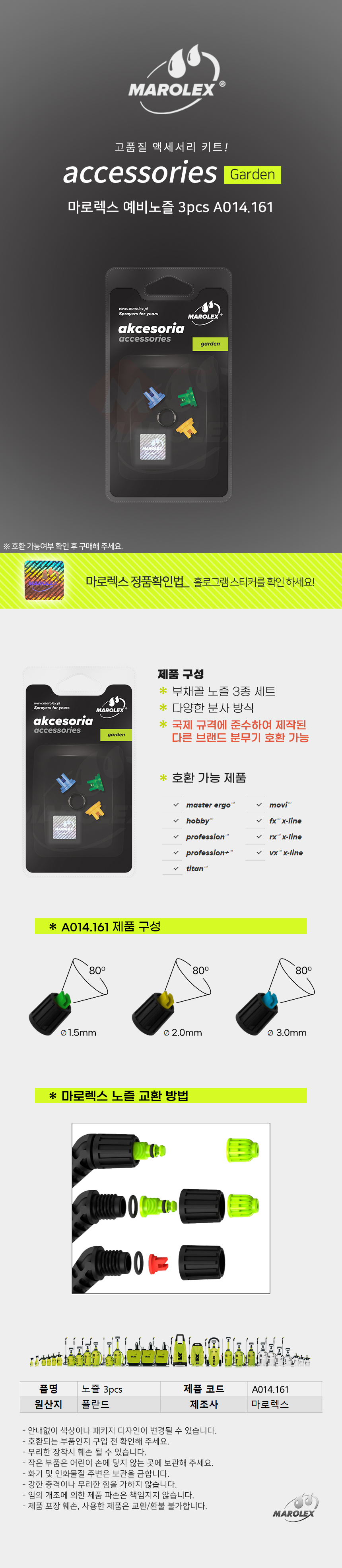 마로렉스 부채꼴 예비노즐 3pcs 압축분무기 호환 부품 Z09j3