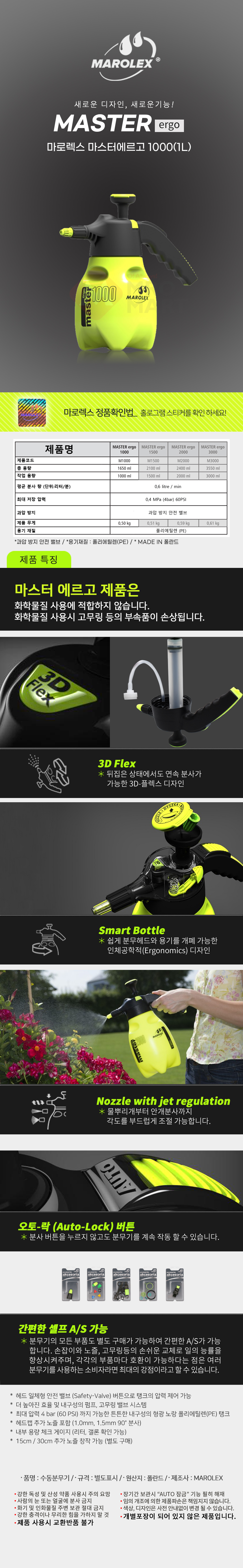 마로렉스 마스터 에르고 1000 압축분무기 원예 세차 수동분무기