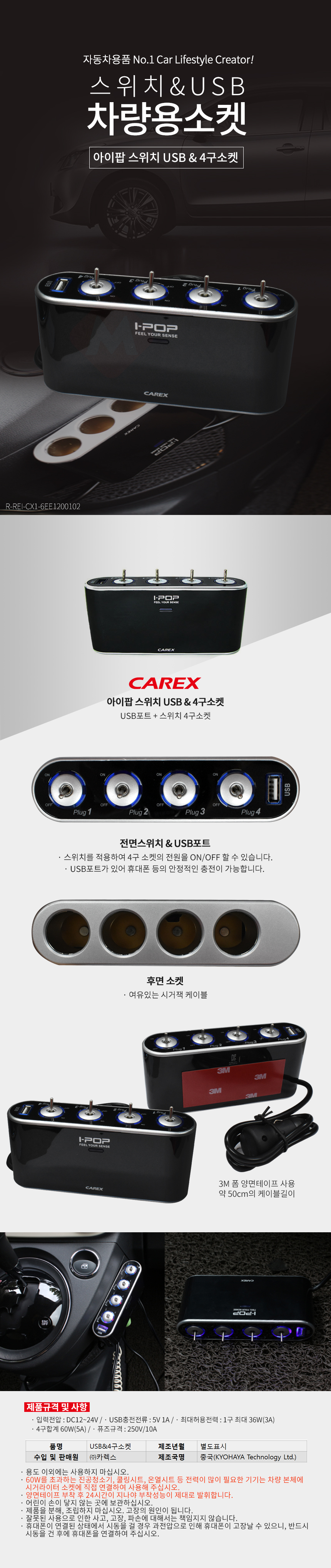 아이팝 스위치 USB&4구소켓 시거잭 충전기 자동차 차량용 차량 용품