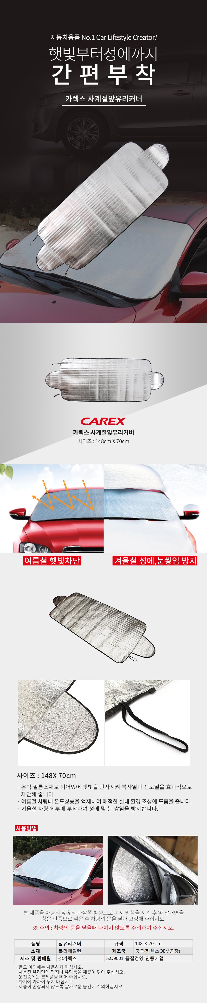카렉스 사계절 앞유리 커버 햇빛 햇볕 창문 앞창 성에 눈 차량용 차량 용품