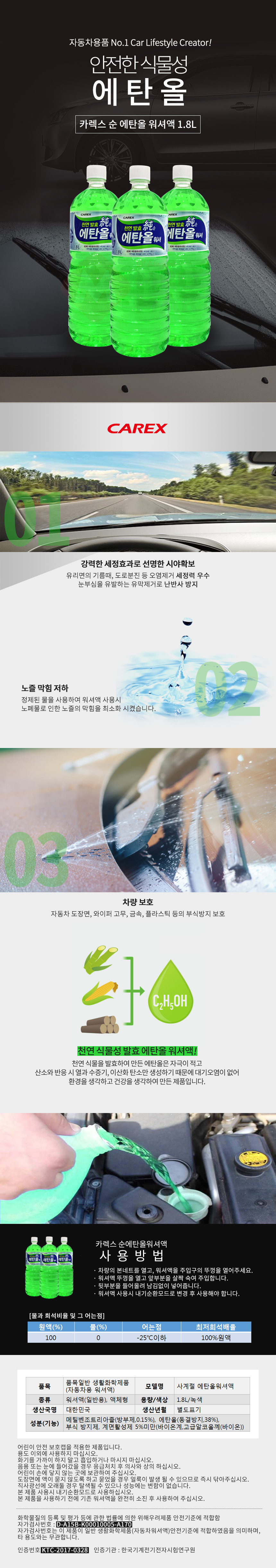 카렉스 순 에탄올 워셔액 사계절 1.8L 세정액 세척액 차량용 자동차