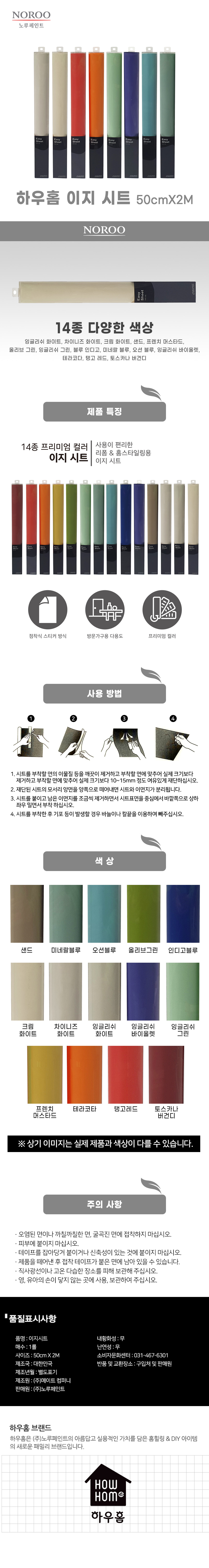 노루페인트 노루표 하우홈 이지 시트지 50cmX2M 가구 방문 리폼 셀프 벽지 필름지 스티커