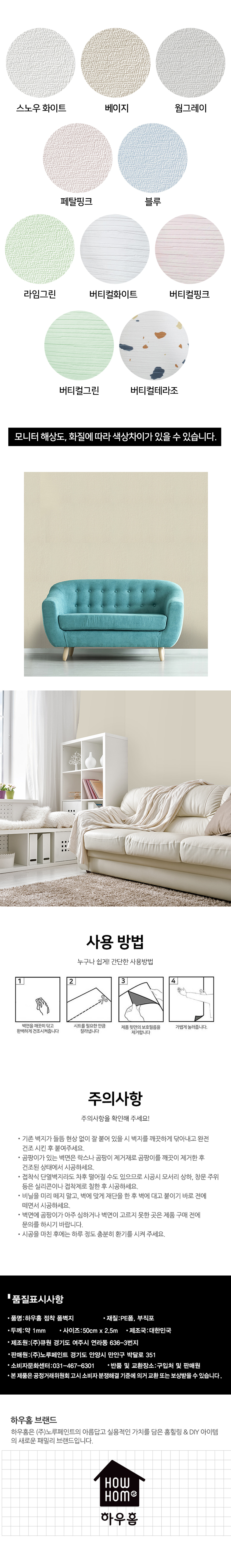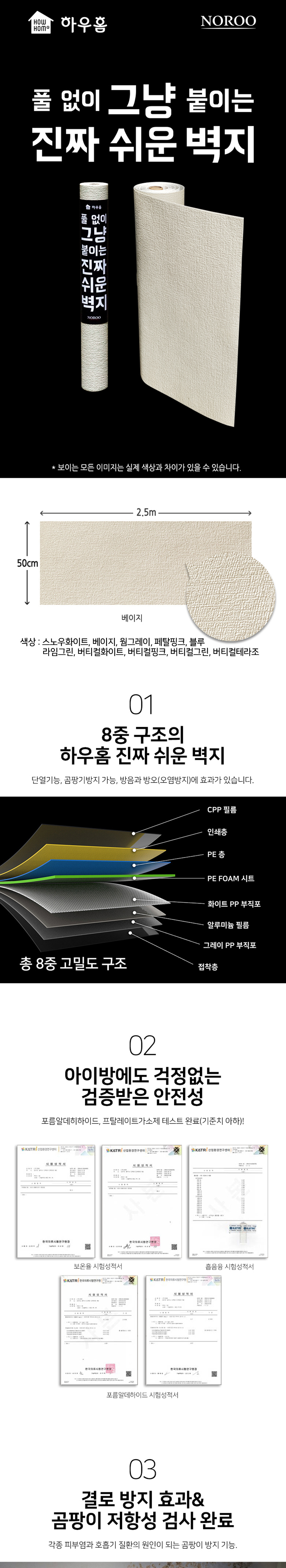 노루페인트 노루표 하우홈 점착 폼 벽지 50cm X 2.5M 시트지 스티커 셀프 도배 부분 단열 곰팡이 방지