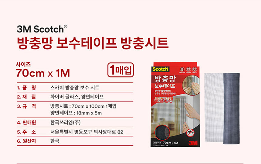 3M 스카치 방충망 보수테이프 대형 70cmX1M 1매입