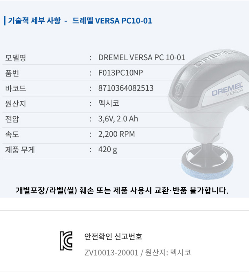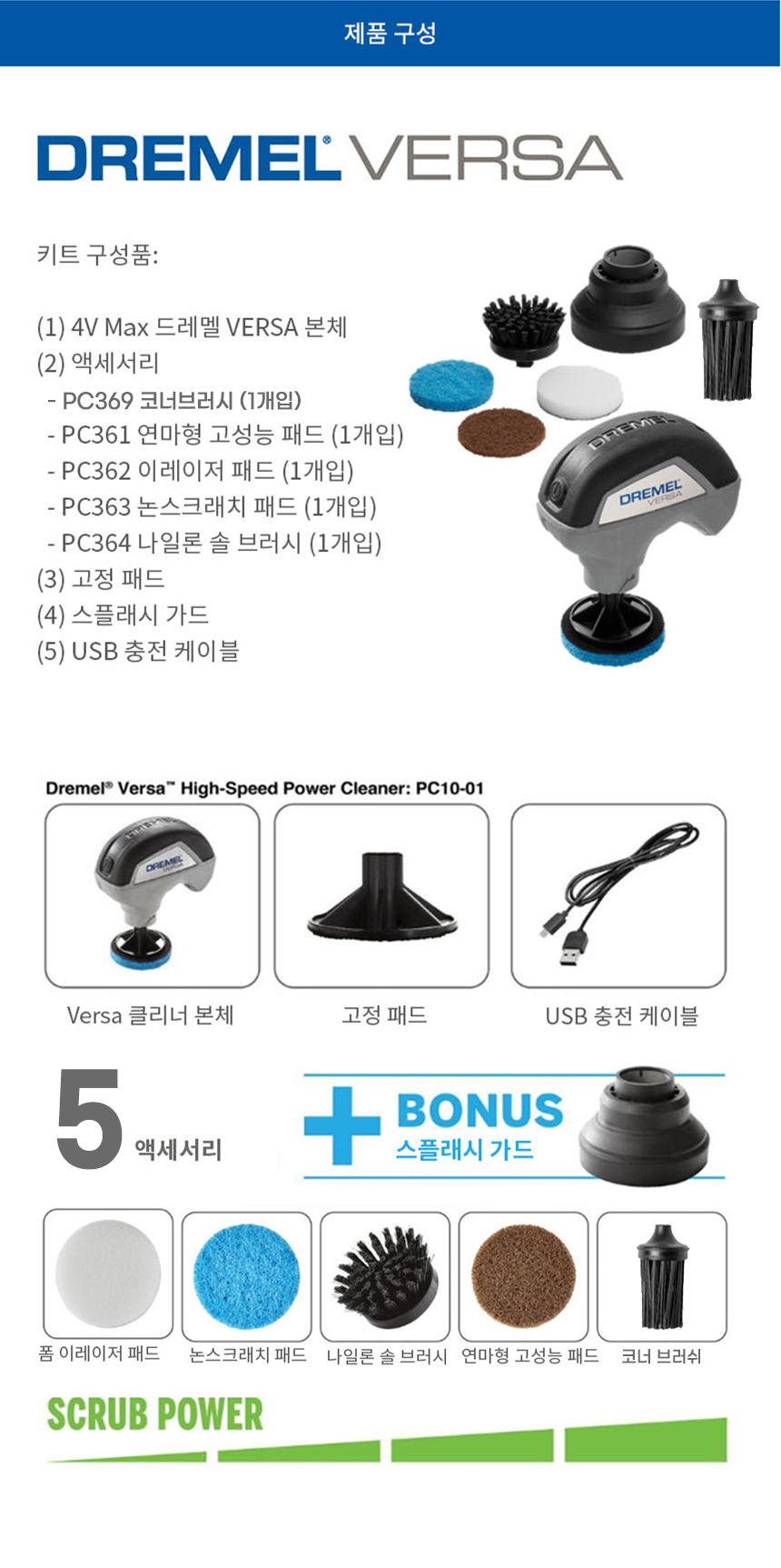 드레멜 VERSA PC10-01 충전 클리닝 툴 세트 F013PC10NP 전동 수세미