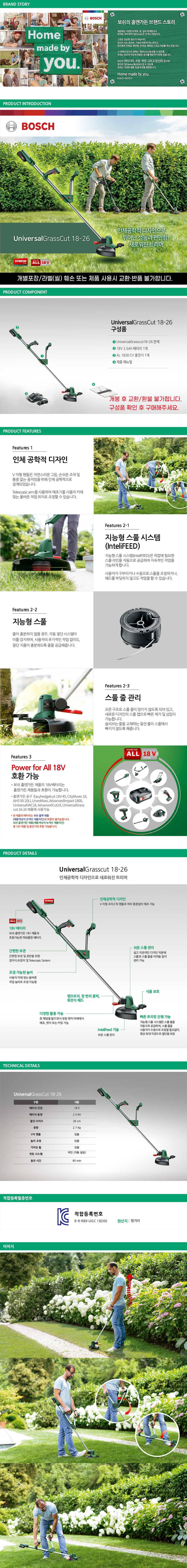 보쉬 UniversalGrassCut 18-26 충전 예초기 잔디깍기 18V 2.5Ah 06008C1EB1