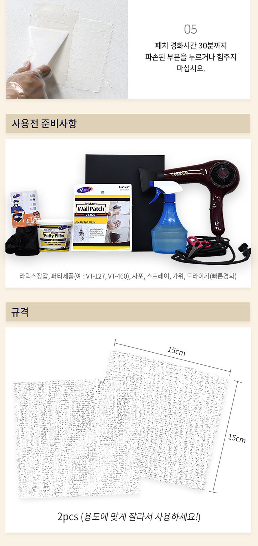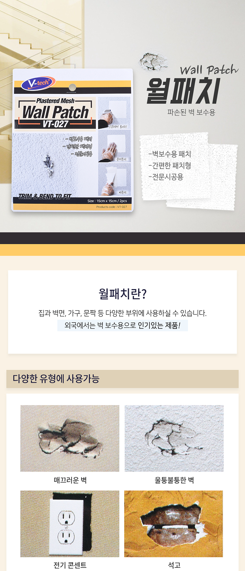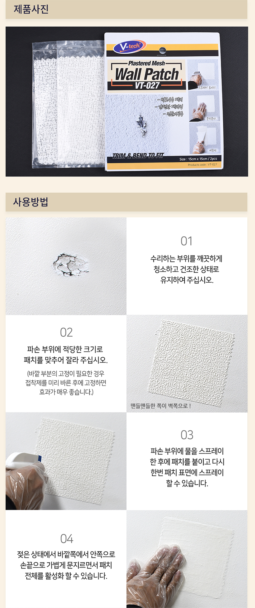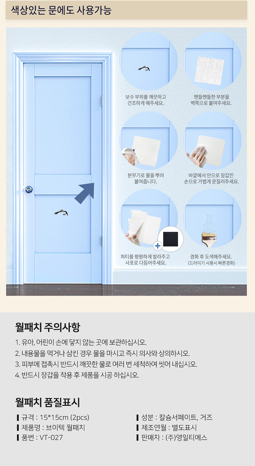 브이텍 TV-027 벽보수용 월패치 벽 석고 가구 다용도 셀프 보수