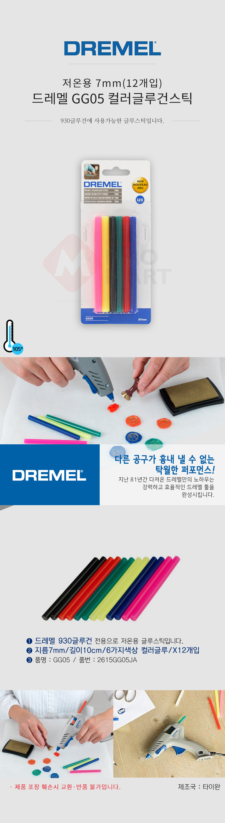드레멜 컬러 글루 스틱 GG05 저온용 7mm 12개입 글루건심 핫멜트 접착체 리폼 2615GG05JA