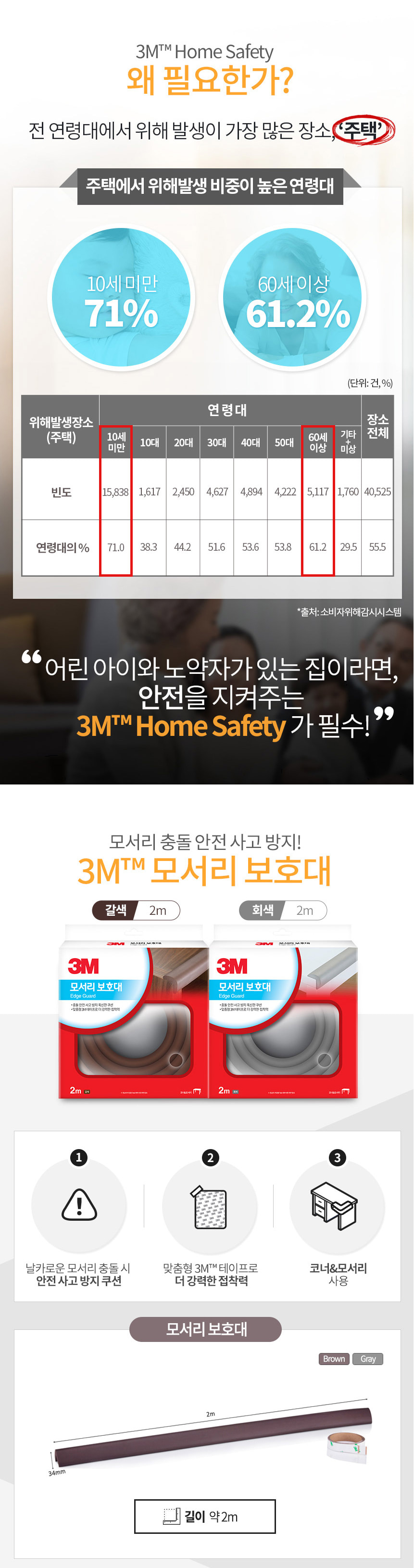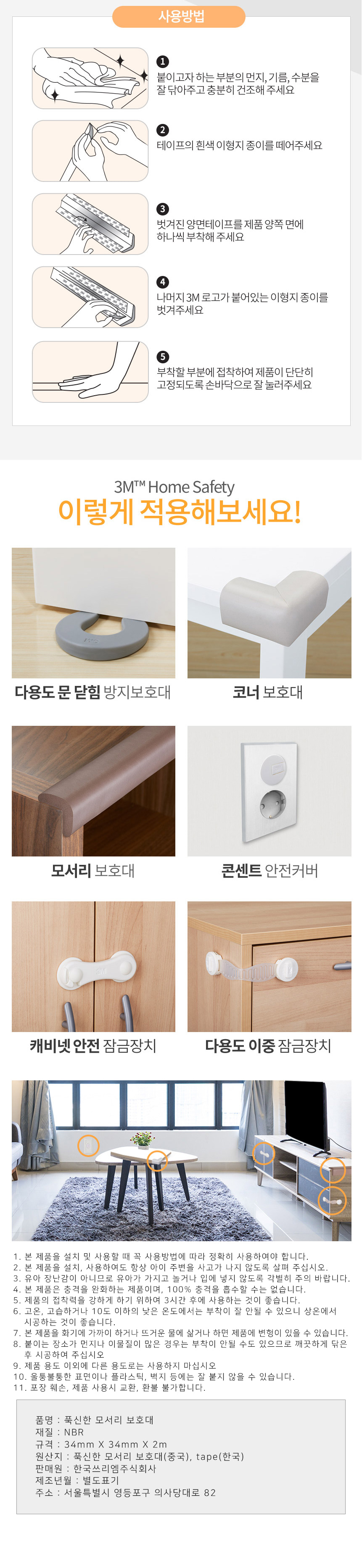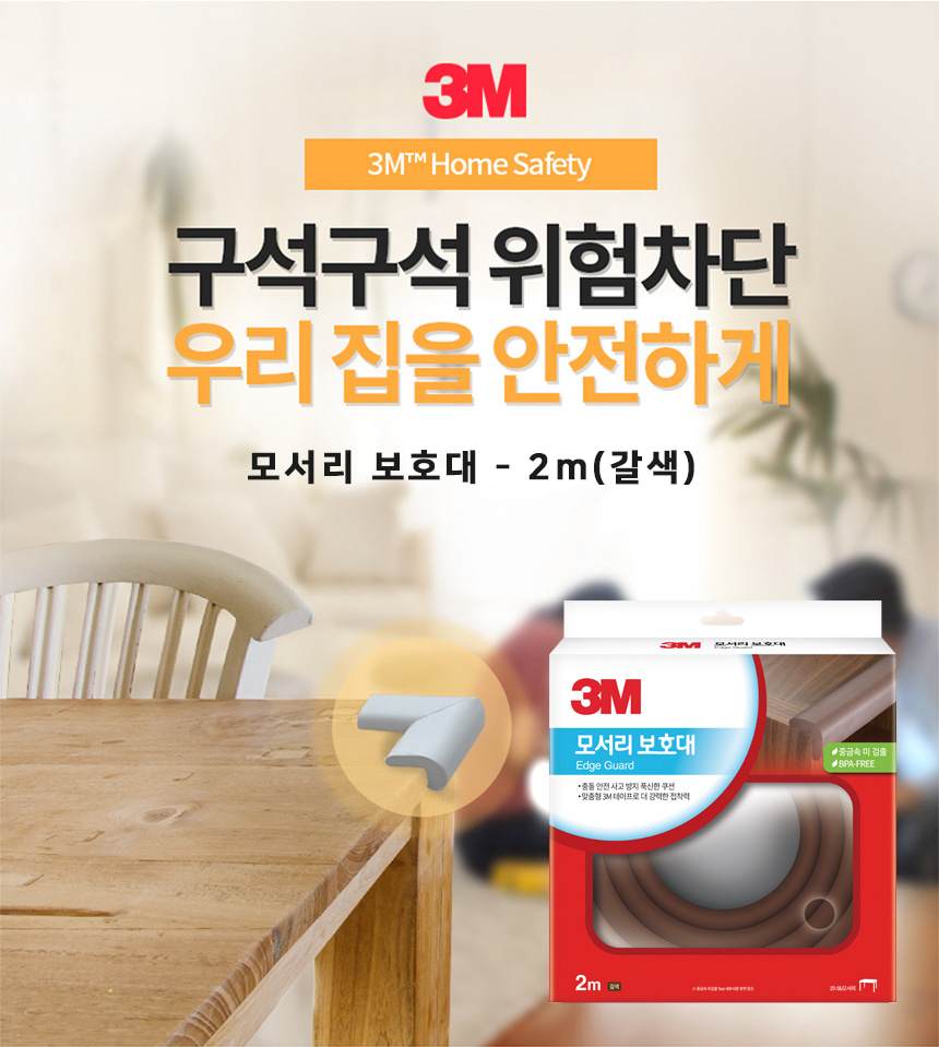 3M 푹신한 모서리 보호대 길이2M 갈색 쿠션 모서리 가드 유아 안전