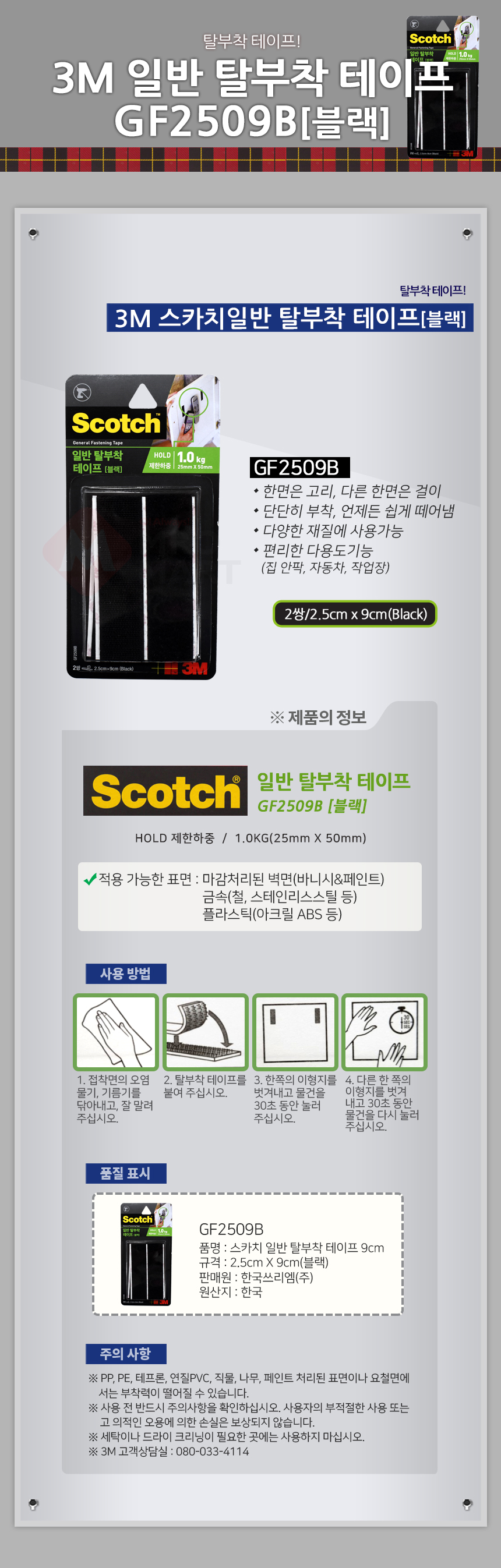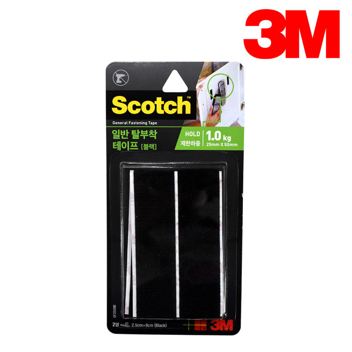3M 스카치 일반 탈부착 테이프 GF2509B 블랙 2.5cmX9cm 양면 강력 찍찍이