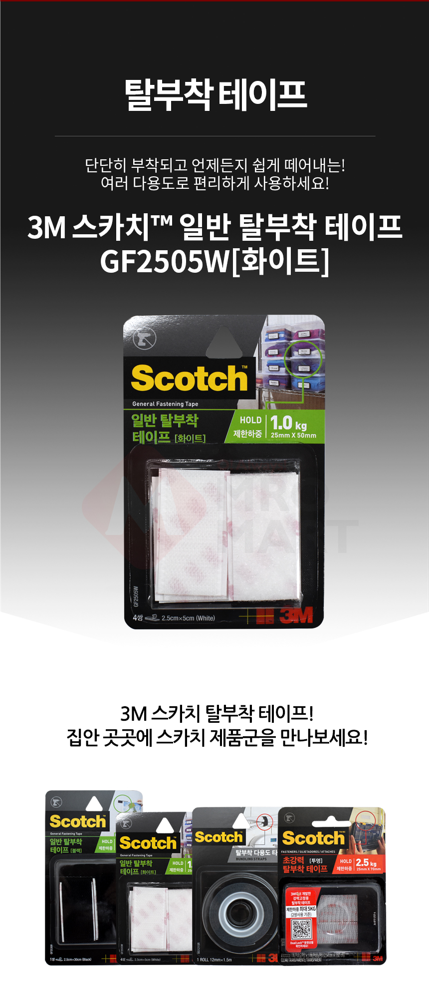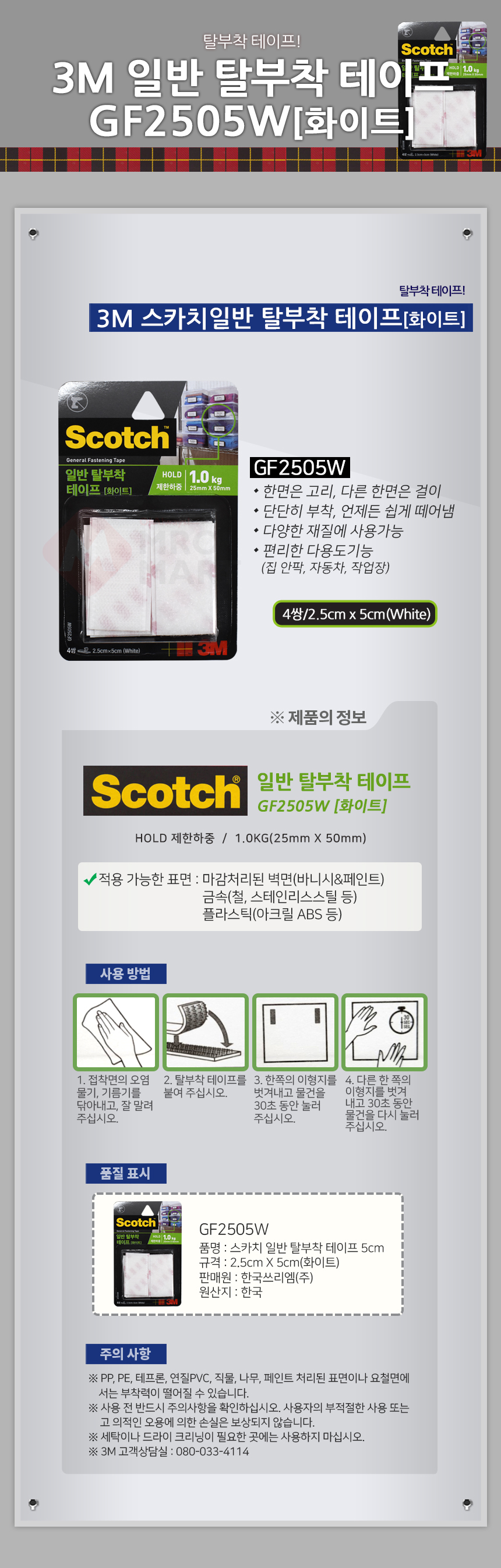 3M 스카치 일반 탈부착 테이프 GF2505W 화이트 2.5cmX5cm 양면 강력 찍찍이