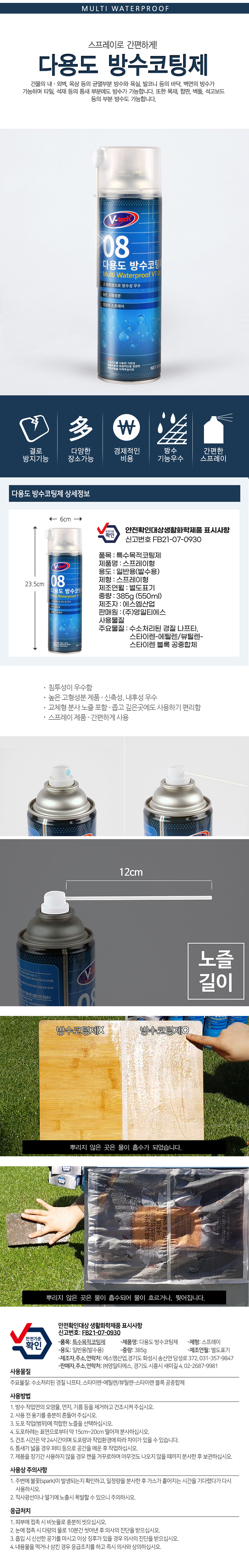 브이텍 다용도 방수코팅제 VT-08 실내외용 타일 목재 벽돌 욕실 발코니 방수