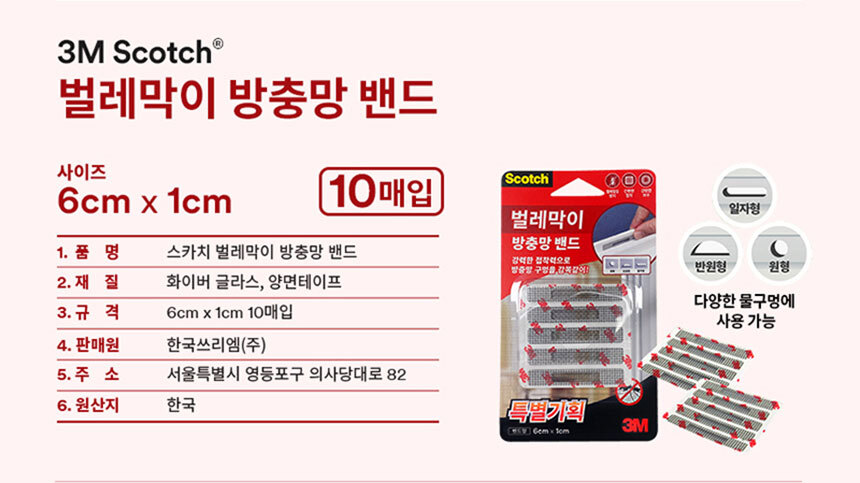3M 스카치 벌레막이 방충망 밴드 6cmX1cm 10개입