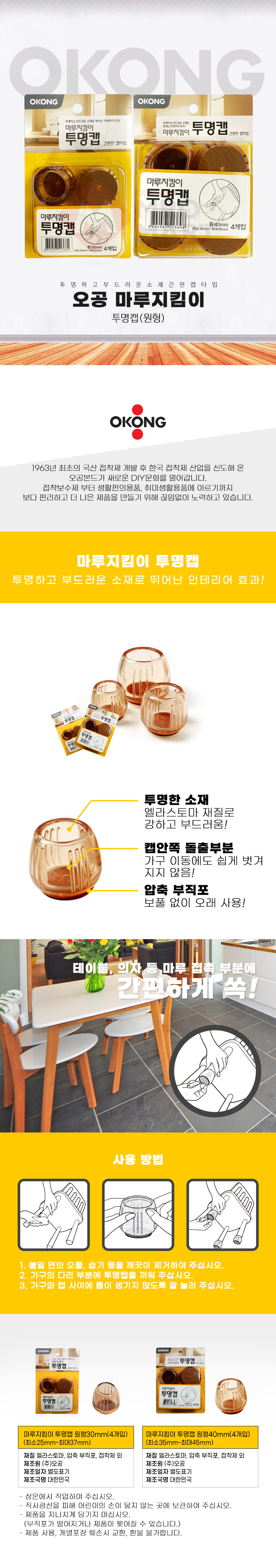 오공 마루지킴이 의자 투명캡 원형 마루 바닥 긁힘 층간 소음 방지