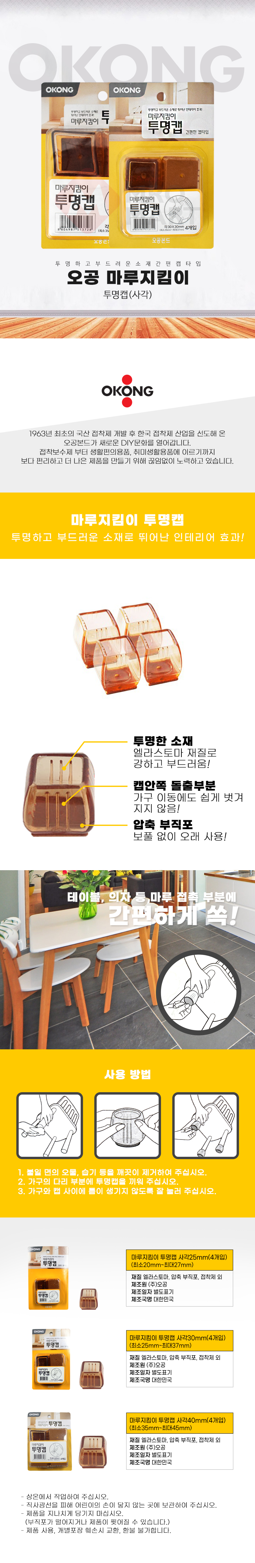 오공 마루지킴이 의자 투명캡 사각 마루 바닥 긁힘 층간 소음 방지