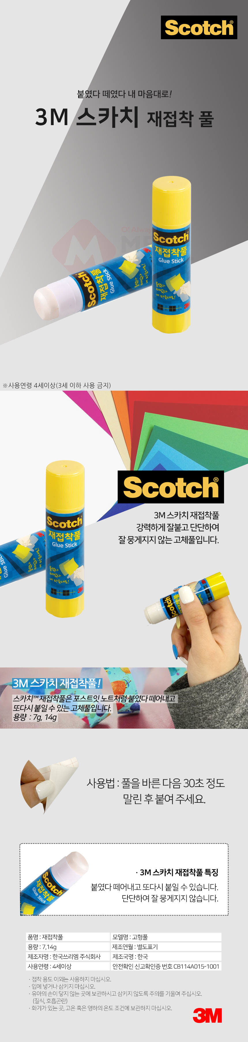 3M 스카치 재접착풀 14g 사무용 풀 고형풀 고체풀