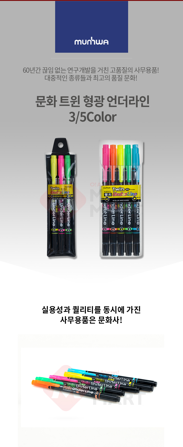 문화 트윈 형광 언더라인 3색 세트 형광펜 형광 마카 수성 필기구 사무용품 컬러펜 필기