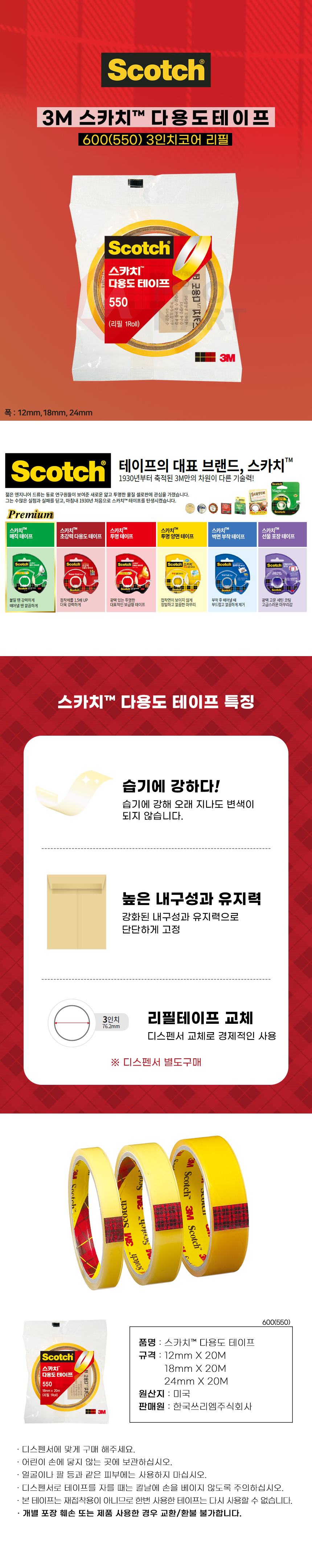 3M 스카치 다용도 테이프 3인치 리필600(550) 12mmX20m