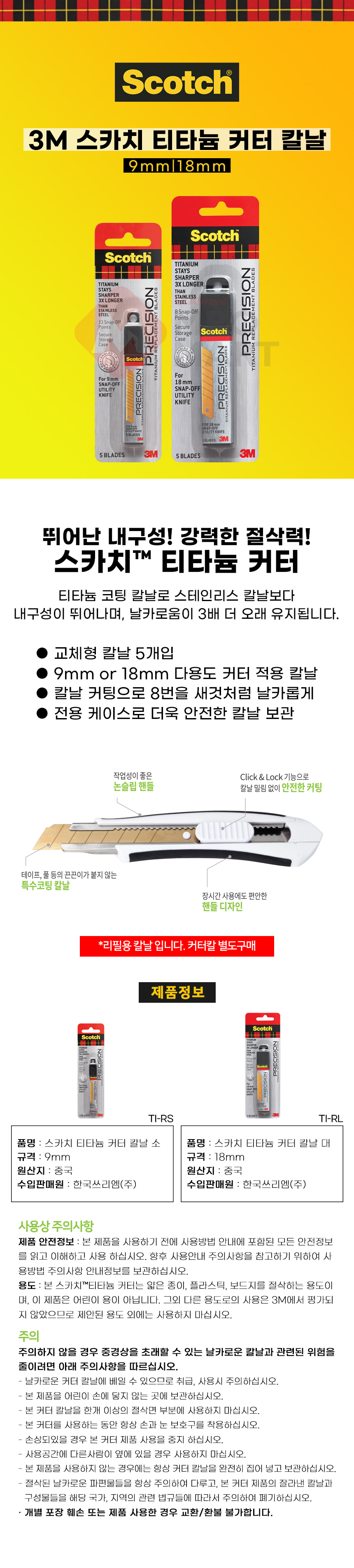3M 스카치 티타늄 커터 칼날 칼심 리필 소 9mm TI-RS