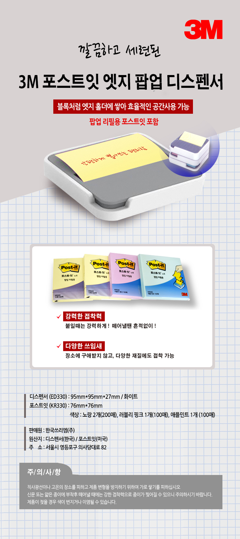 3M 포스트잇 노트 ED330 엣지 팝업 디스펜서
