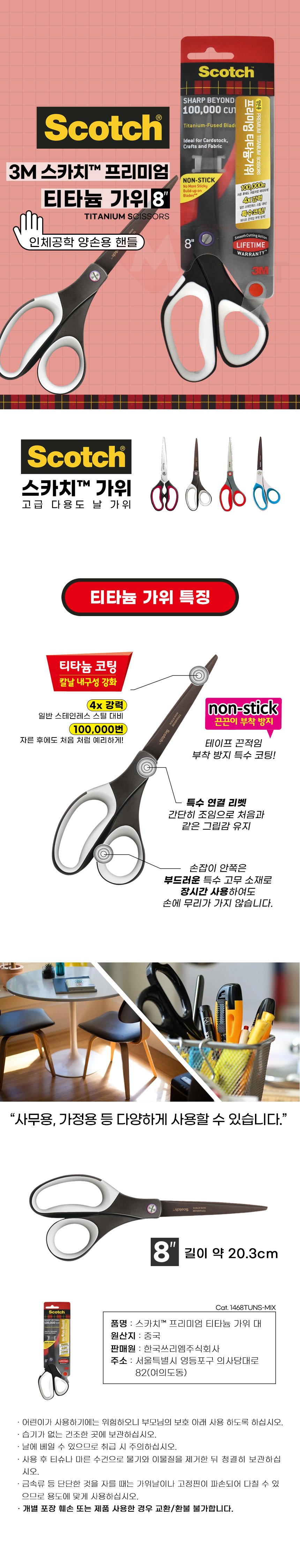 3M 프리미엄 8인치 티타늄 가위 양손용 특수코팅