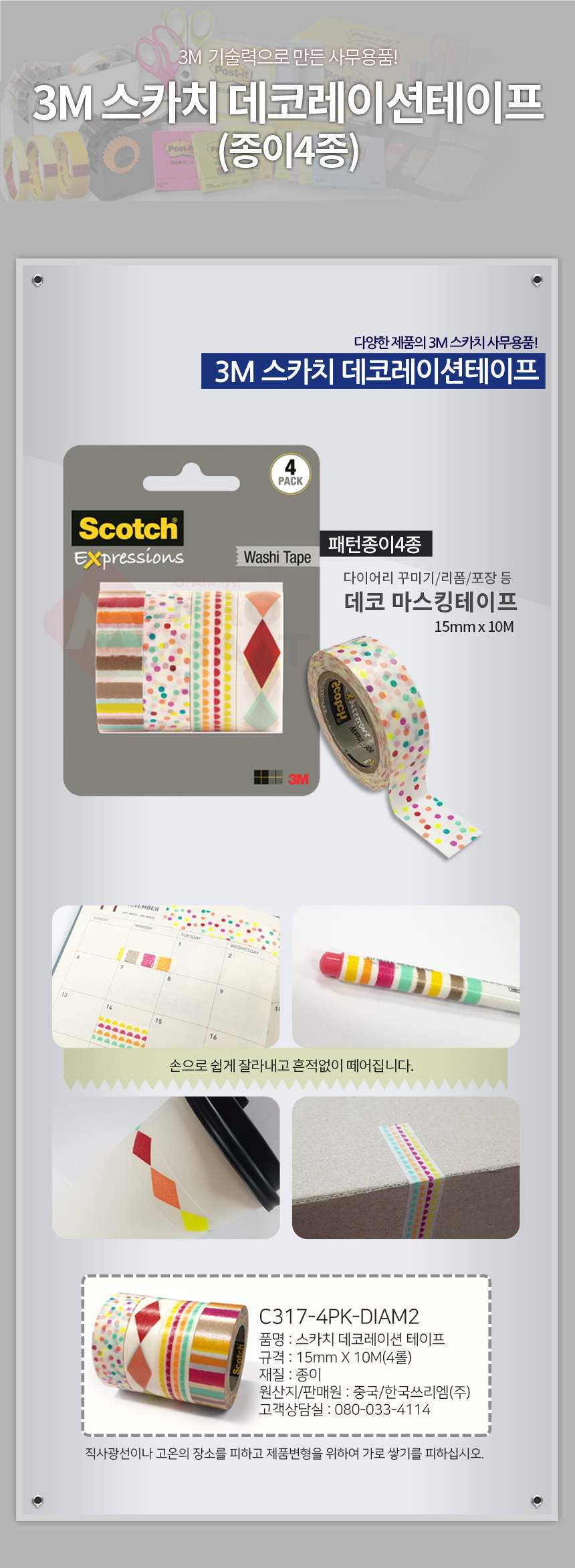 3M 데코레이션 테이프(종이4종) C317 데코 마스킹테이프