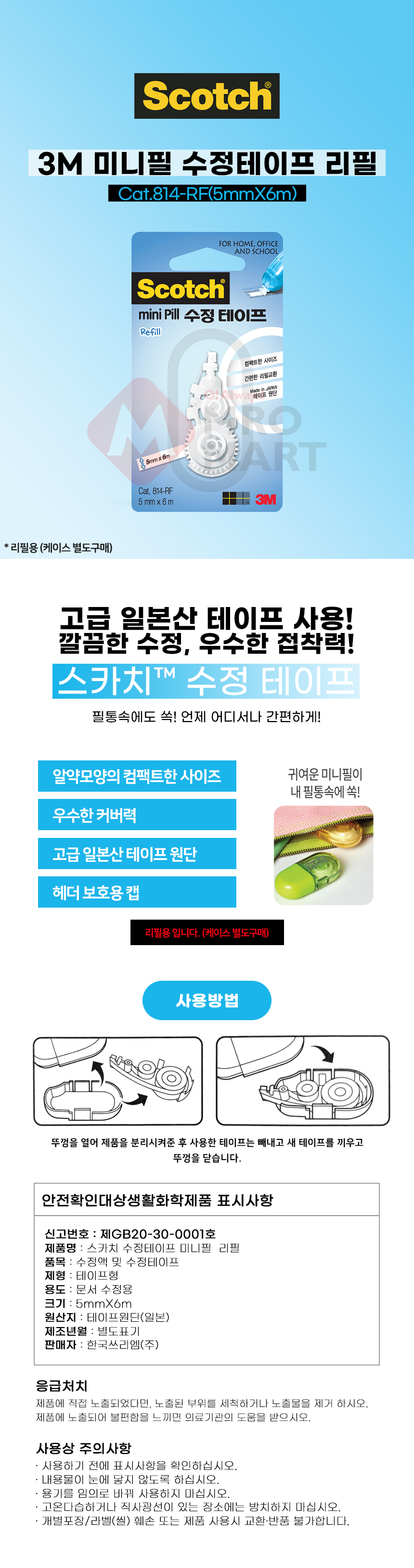 3M 미니필 수정 테이프 리필 교체용 5mmX6m cat.814-RF