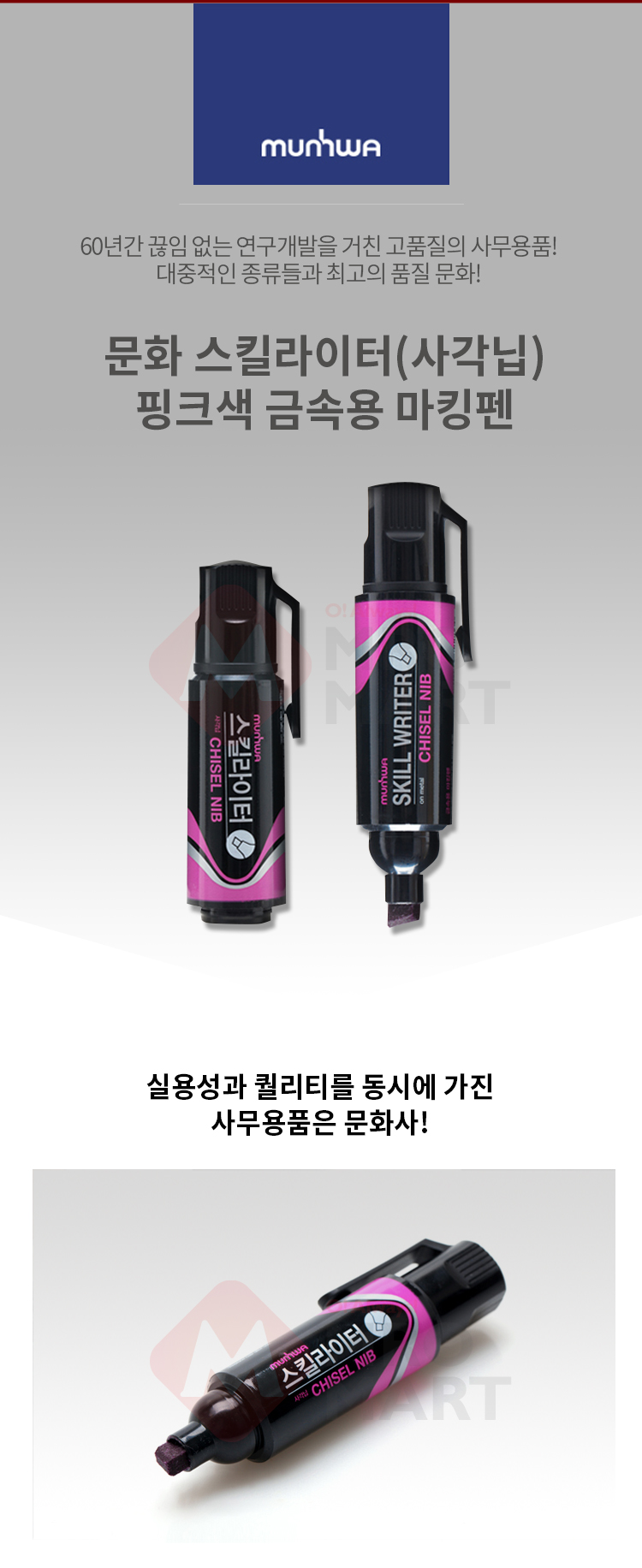문화 스킬라이터 사각닙 핑크색 금속용 마킹펜 스틸 마카 마커