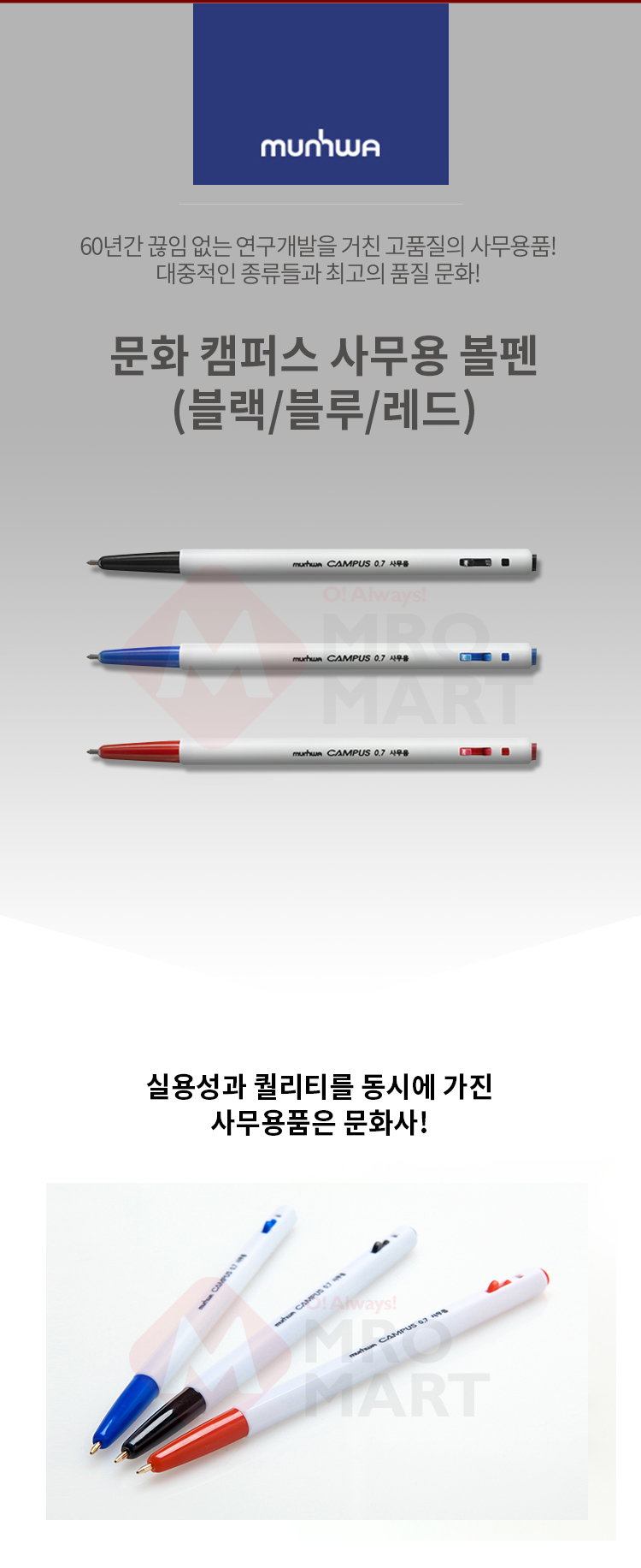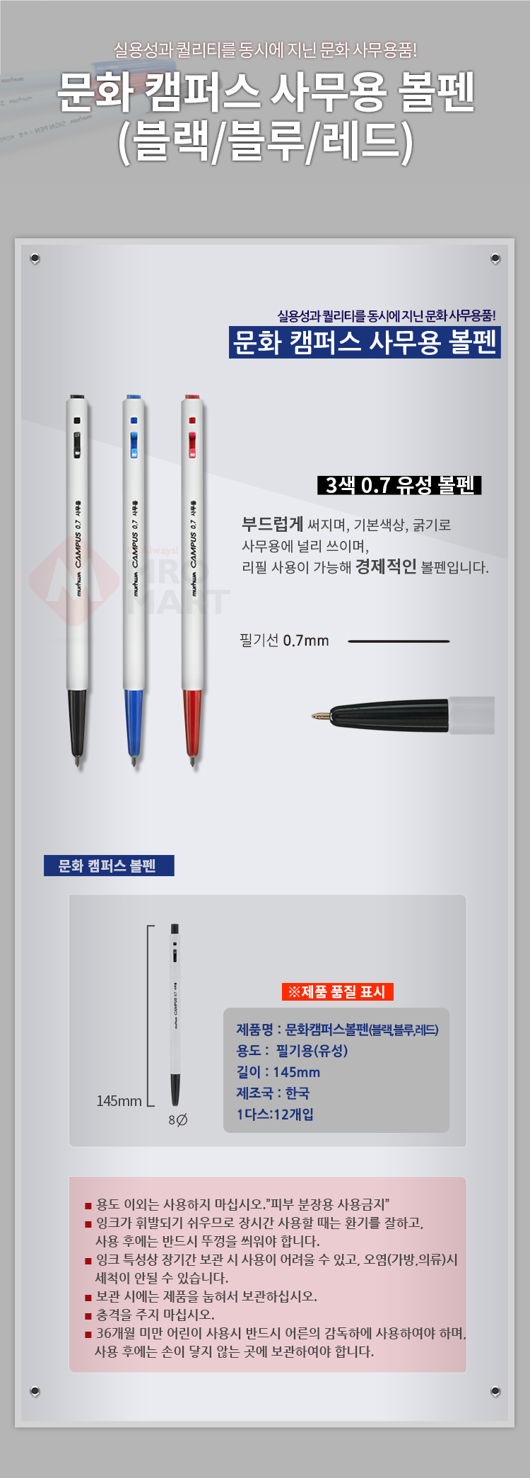 문화 캠퍼스 볼펜 0.7mm 낱개 유성 청색 적색 흑색 사무용 필기