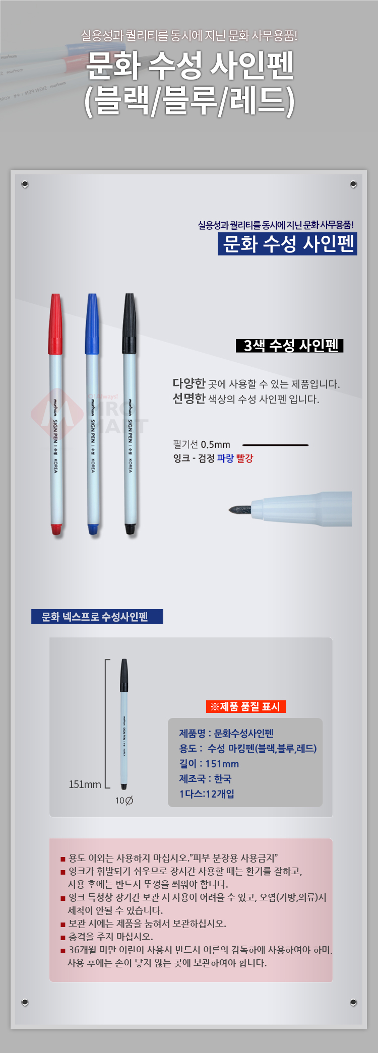 문화 수성 사인펜 낱개 흑색 적석 청색 싸인펜 필기 문구 사무 용품