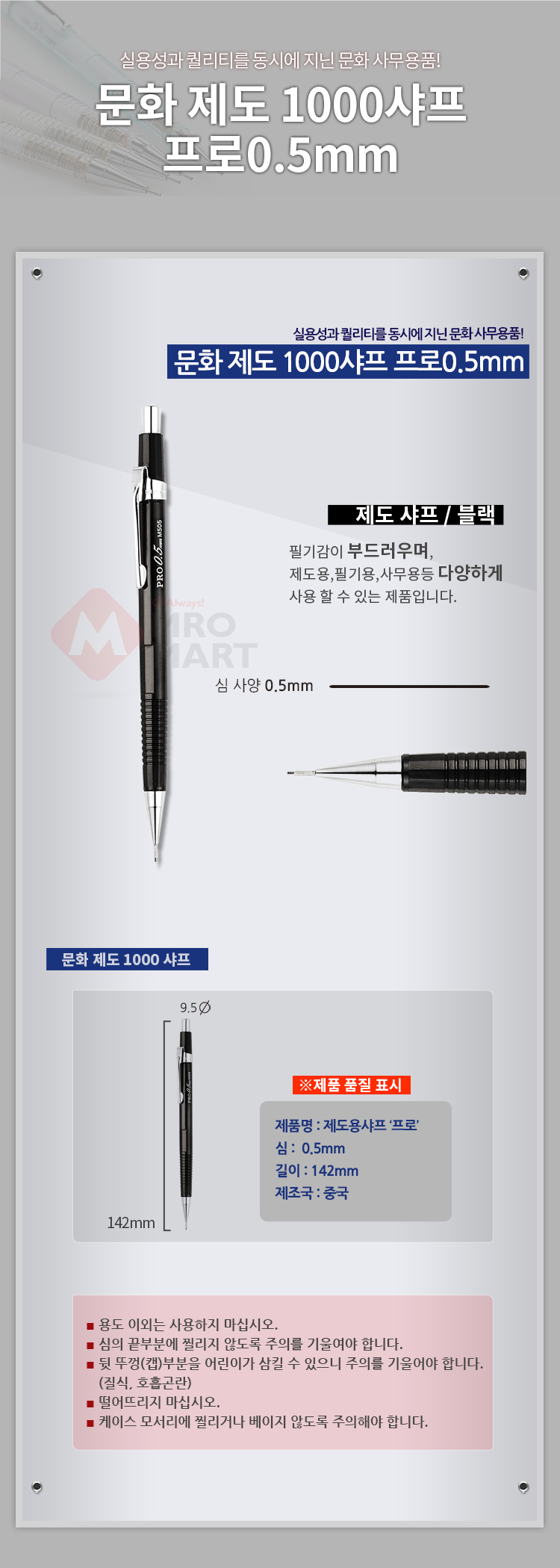 문화 제도용 샤프 프로 0.5mm 블랙 샤프펜 연필 필기 도구 학습용 사무용품