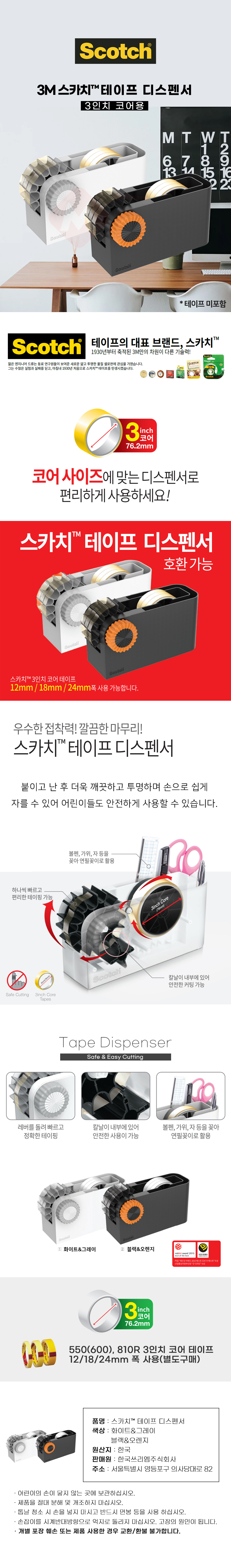 3M 스카치 3인치 테이프 디스펜서 커터기 블랙&오렌지
