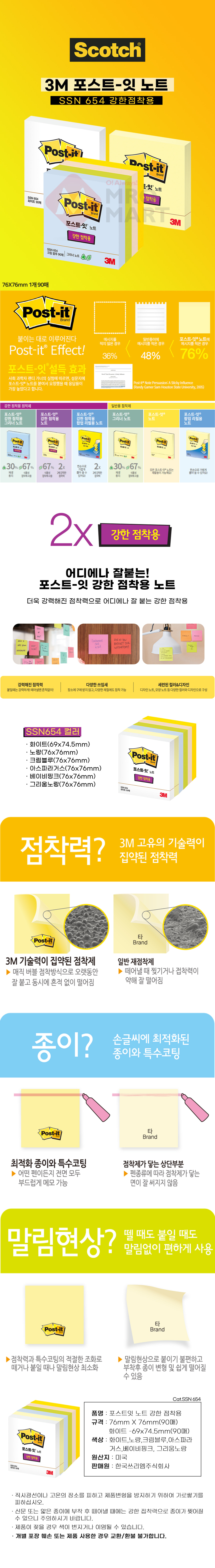 3M 포스트잇 노트 SSN 654 시리즈 강한 접착 점착 붙이는 메모지 사무 스터디