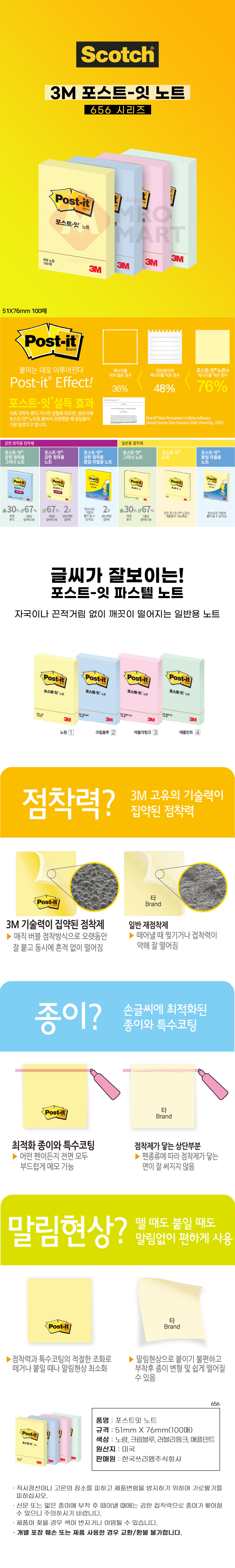 3M 포스트잇 노트 656 시리즈 접착 점착 메모지