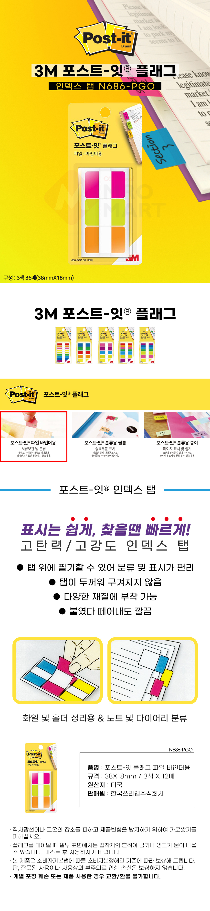 3M 포스트잇 플래그 N686-PGO 분류용 필름