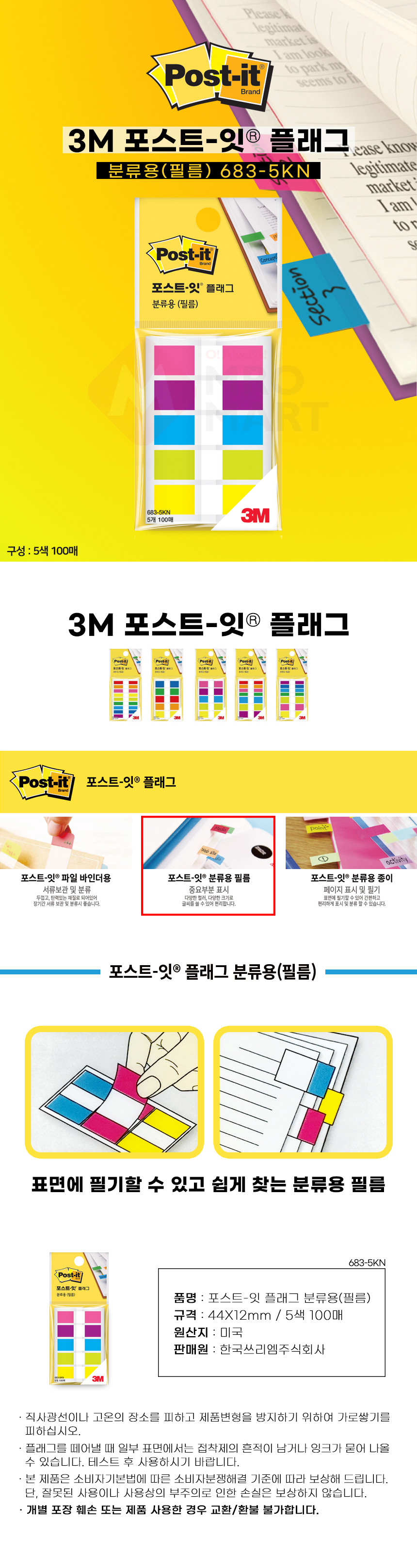 3M 포스트잇 플래그 683-5KN 분류용 필름